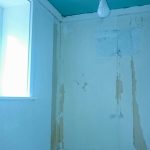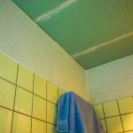 De badkamer en de wc hebben geen prioriteit in deze verbouwing. Het toilet doet het en we hebben lekker warm water in de douche en dat is voor nu het belangrijkste. Alleen zit er geen plafond meer in en dat is wat minder fijn, zowel qua geluid als geur. Ook stoomt de douche tegen de nieuwe verdiepingsvloer en dat is ook geen gewenste situatie.